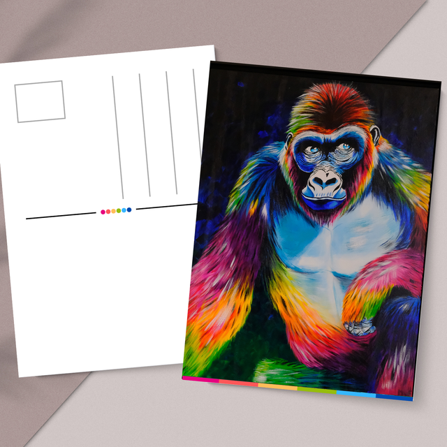 Print van mijn kleurrijke Gorilla schilderij op een ansichtkaart