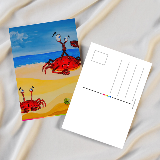 Print van mijn kleurrijke Krab in de knoop schilderij op een ansichtkaart
