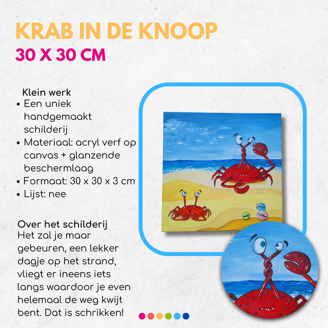 - Materiaal: acryl verf op canvas + glanzende beschermlaag