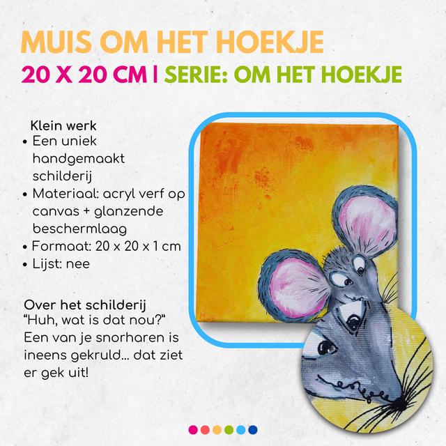 - Materiaal: acryl verf op canvas + glanzende beschermlaag
