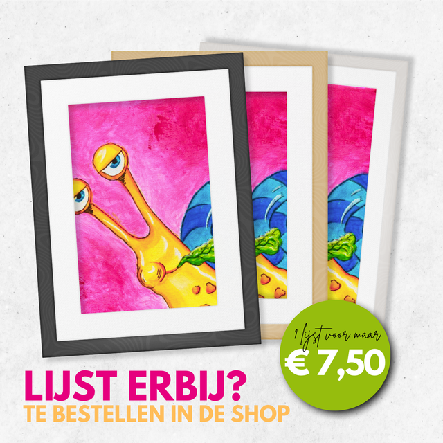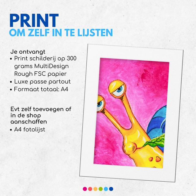 Print van mijn kleurrijke Slak schilderij met luxe passe partout om zelf in te lijsten.