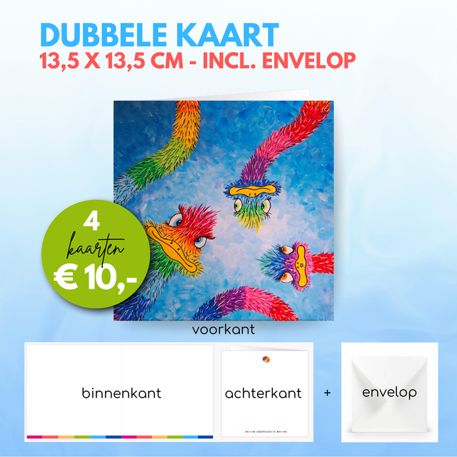 Print van mijn kleurrijke Struisvogel 3 schilderij op een dubbele kaart.