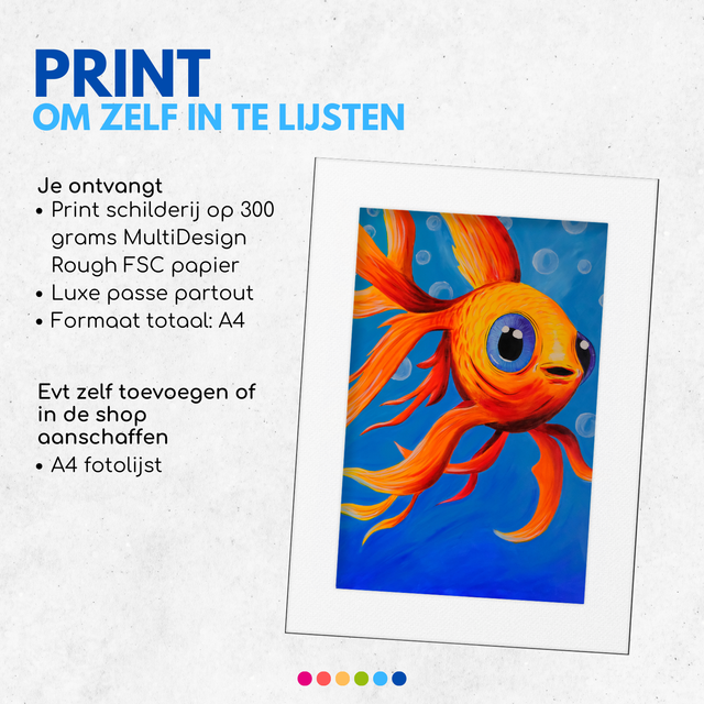 Print van mijn kleurrijke Vis schilderij met luxe passe partout om zelf in te lijsten.