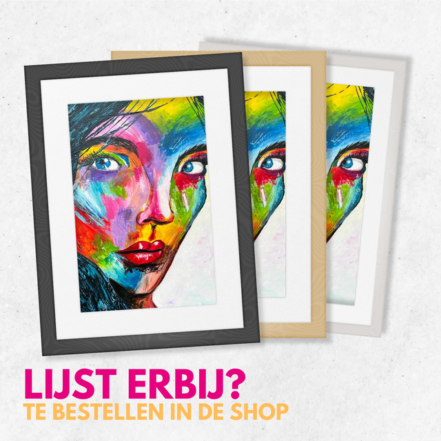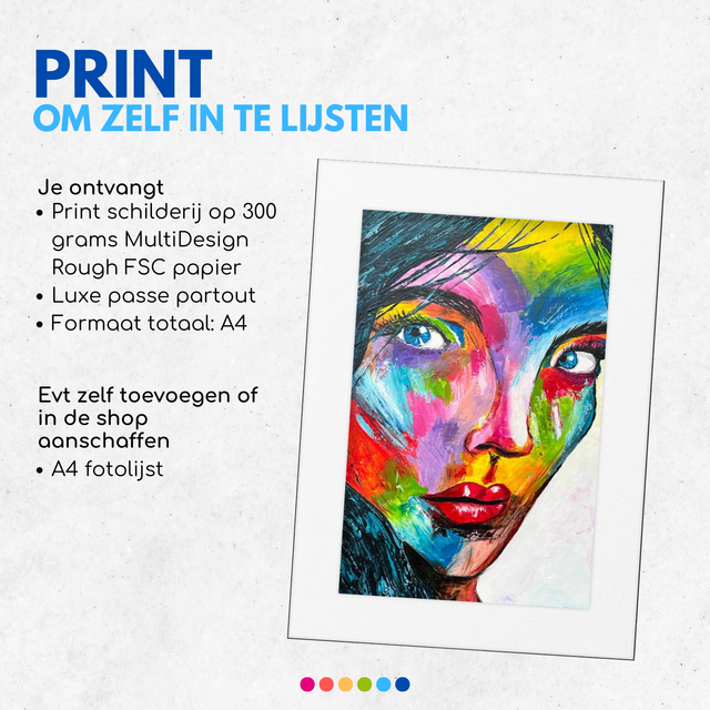 Print van mijn kleurrijke Woman schilderij met luxe passe partout om zelf in te lijsten.